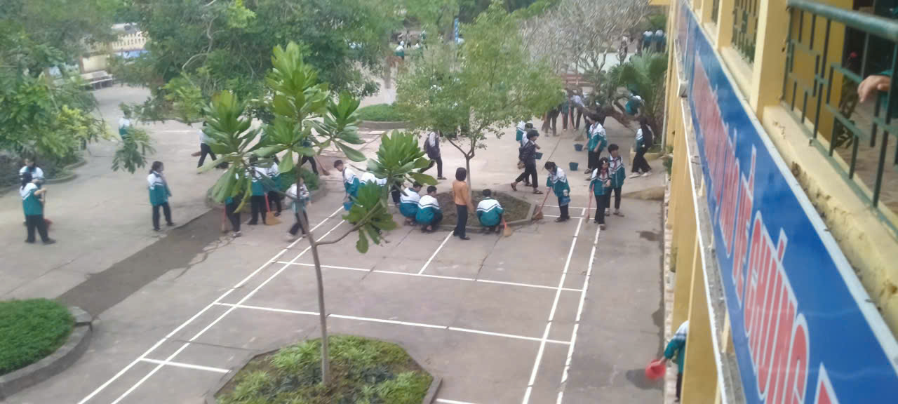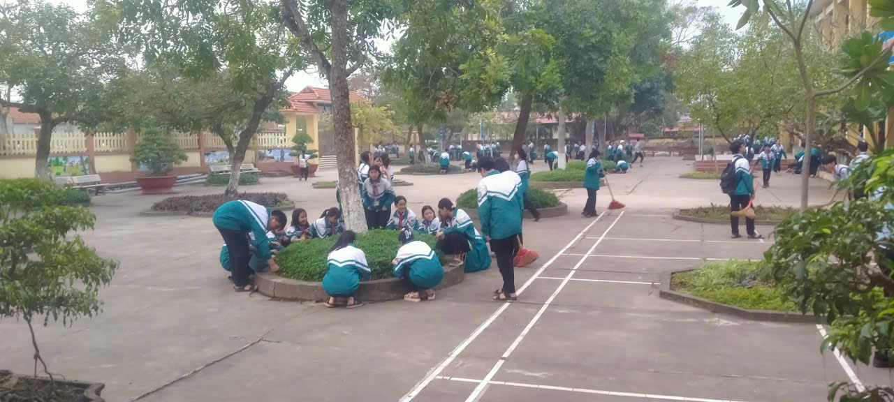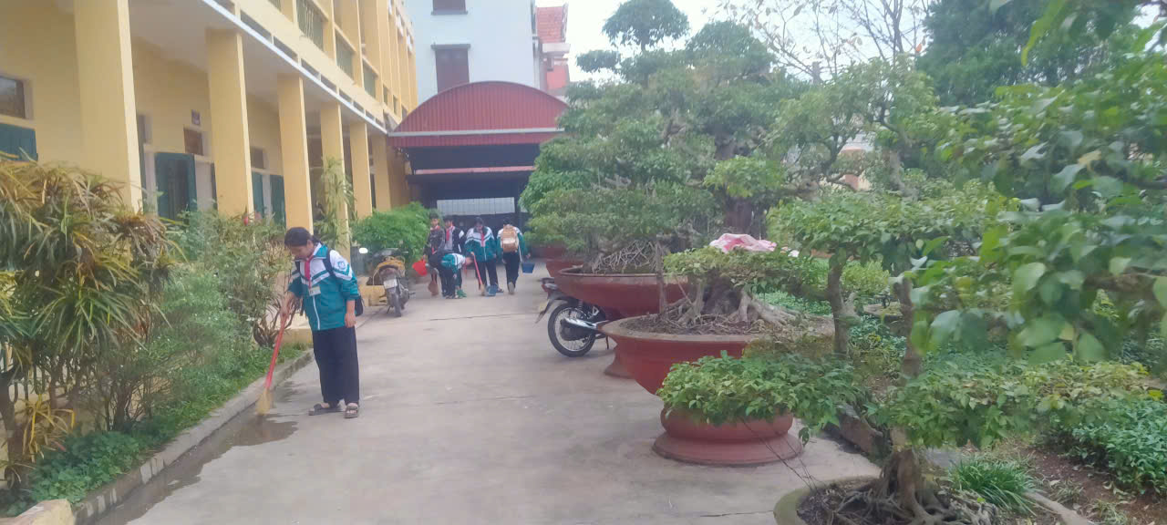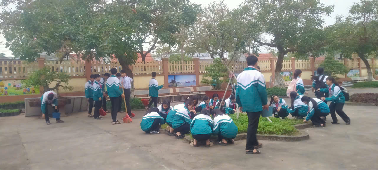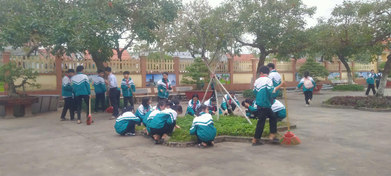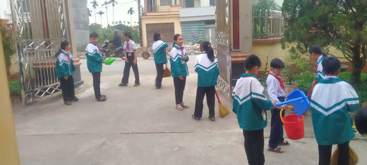Học sinh trường THCS Hải Phương tham gia lao động vệ sinh