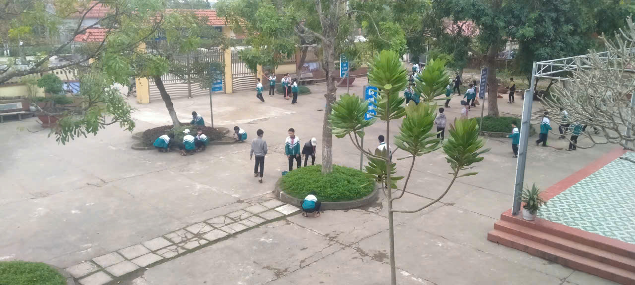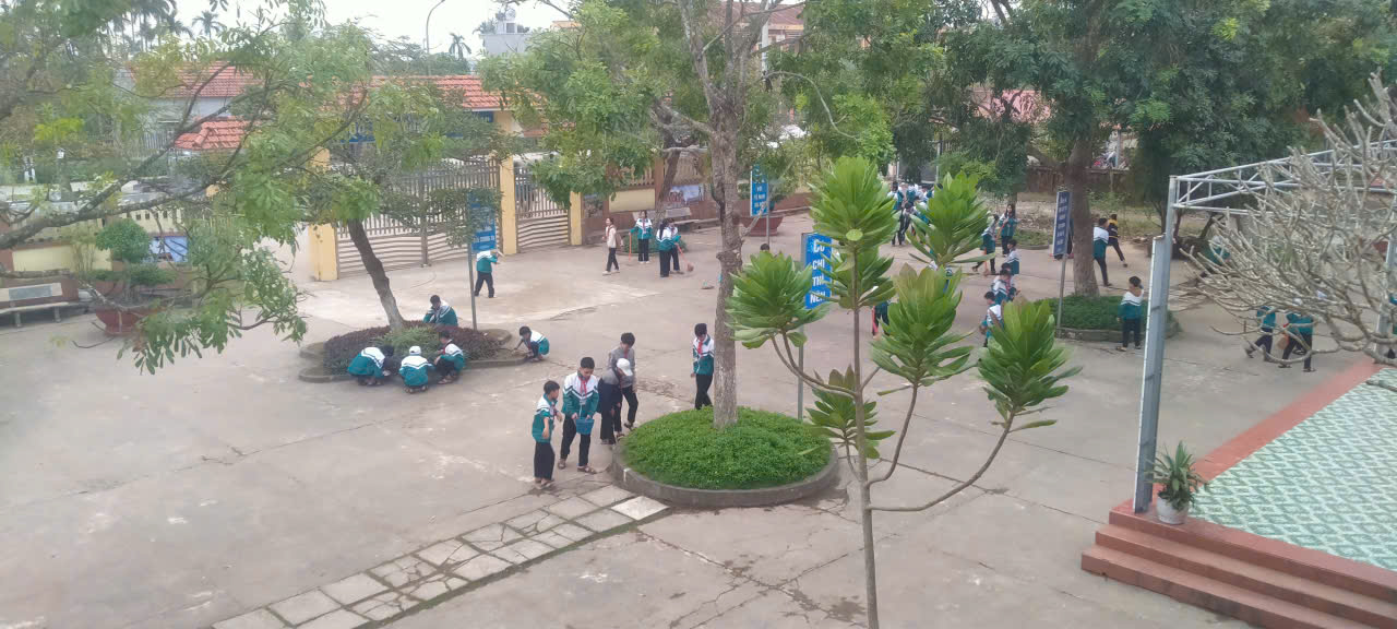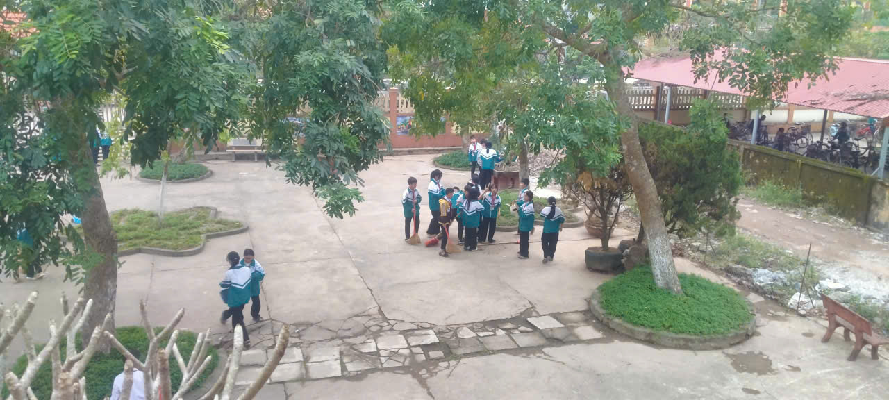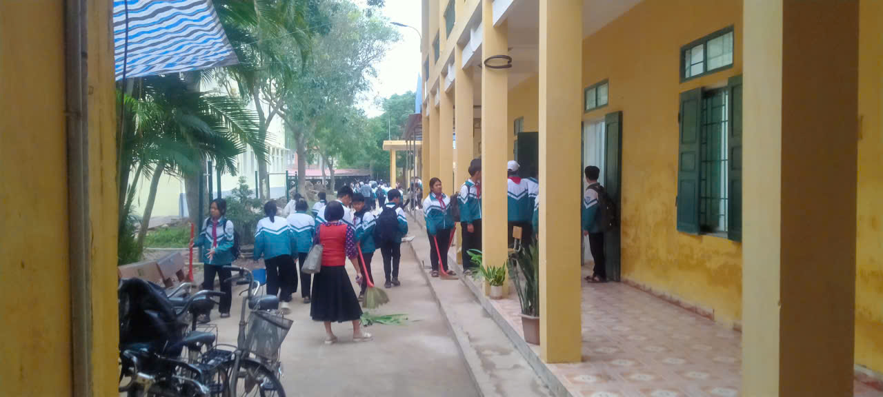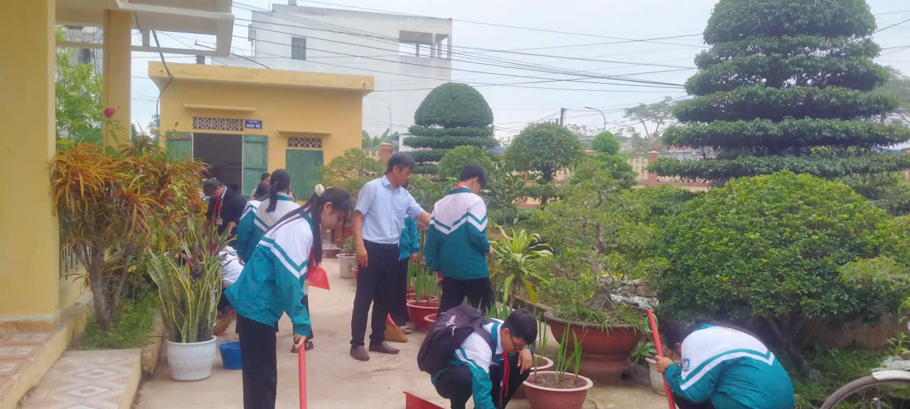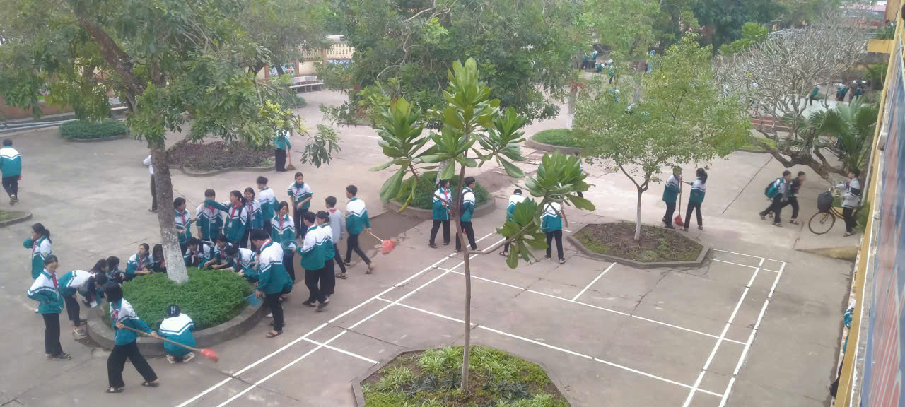 Học sinh trường THCS Hải Phương tham gia lao động vệ sinh