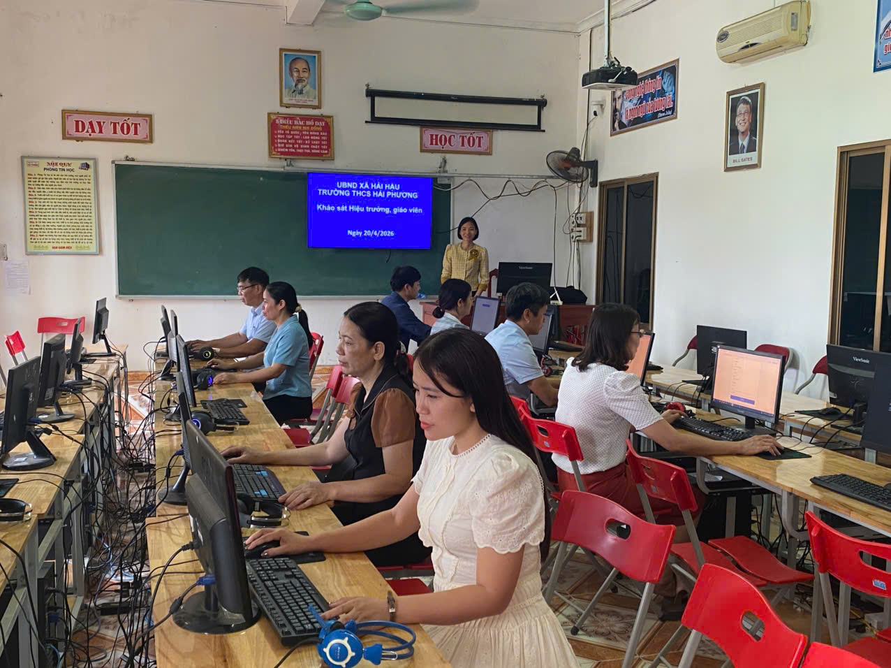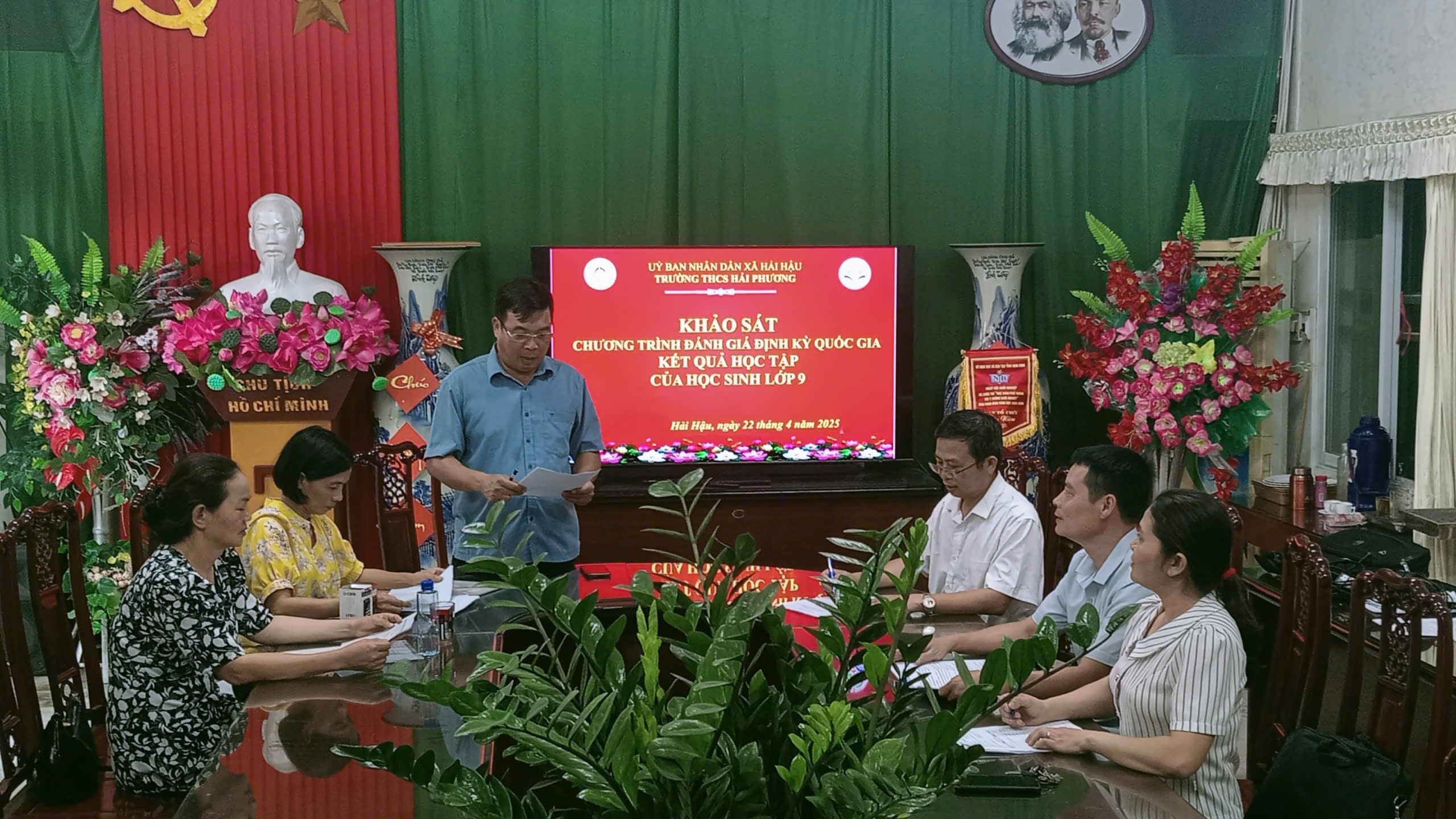 Thực hiện Công văn số 425 ngày 18/3/2026 của Cục Quản lý chất lượng, Bộ Giáo dục và Đào tạo và Công văn số 979 ngày 02/4/2026 của Sở Giáo dục và Đào tạo tỉnh Ninh Bình về việc triển khai tổ chức khảo sát chính thức, chương trình đánh giá định kỳ quốc gia kết quả học tập của học sinh lớp 5, lớp 9 và lớp 11, ngày 22/4/2026, Trường THCS Hải Phương, xã Hải Hậu đã tổ chức và hoàn thành Kỳ khảo sát chính thức nghiêm túc, đúng quy định.