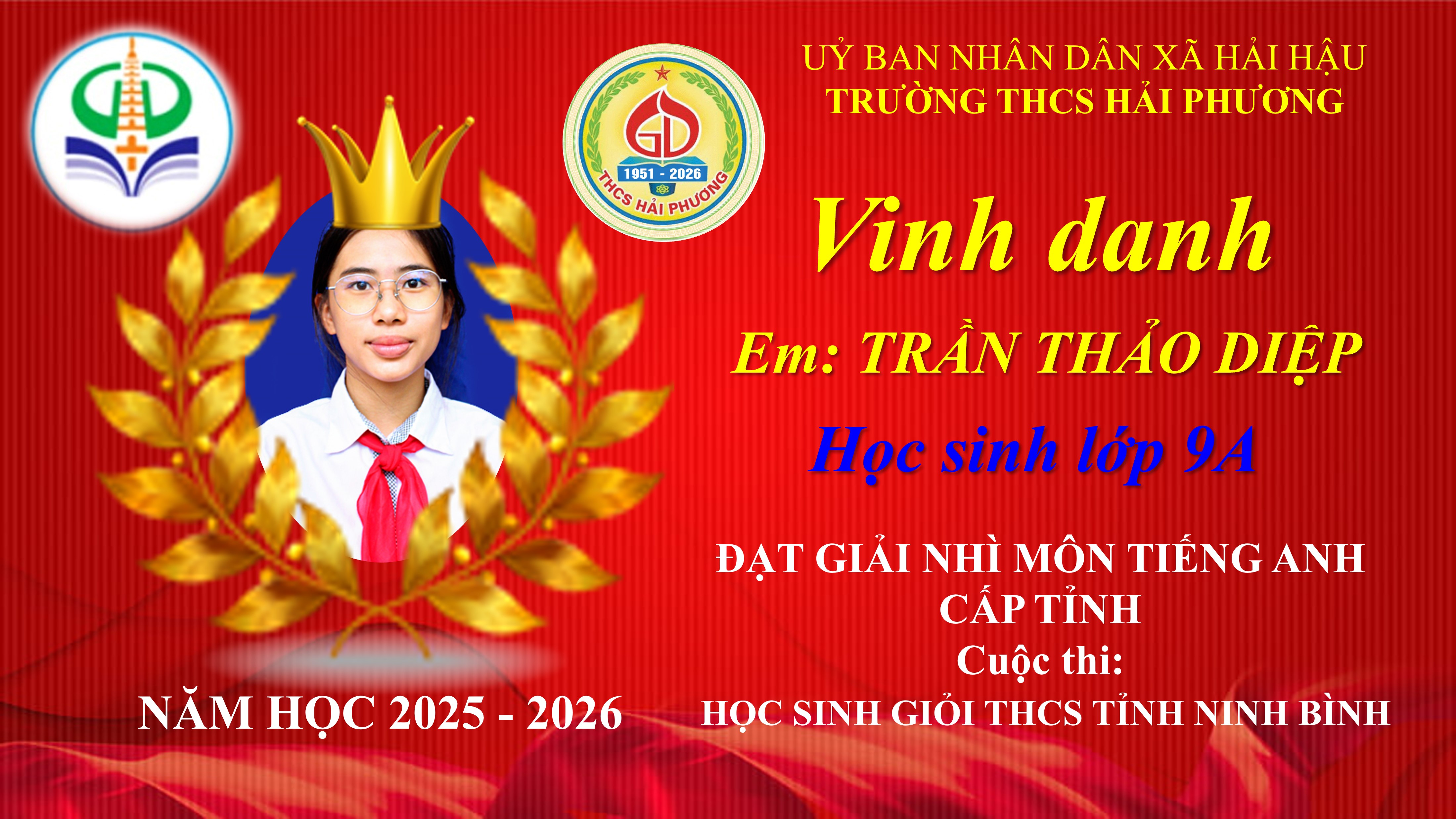 Trần Thảo Diệp – Lớp 9A – Giải Nhì môn Tiếng Anh 9