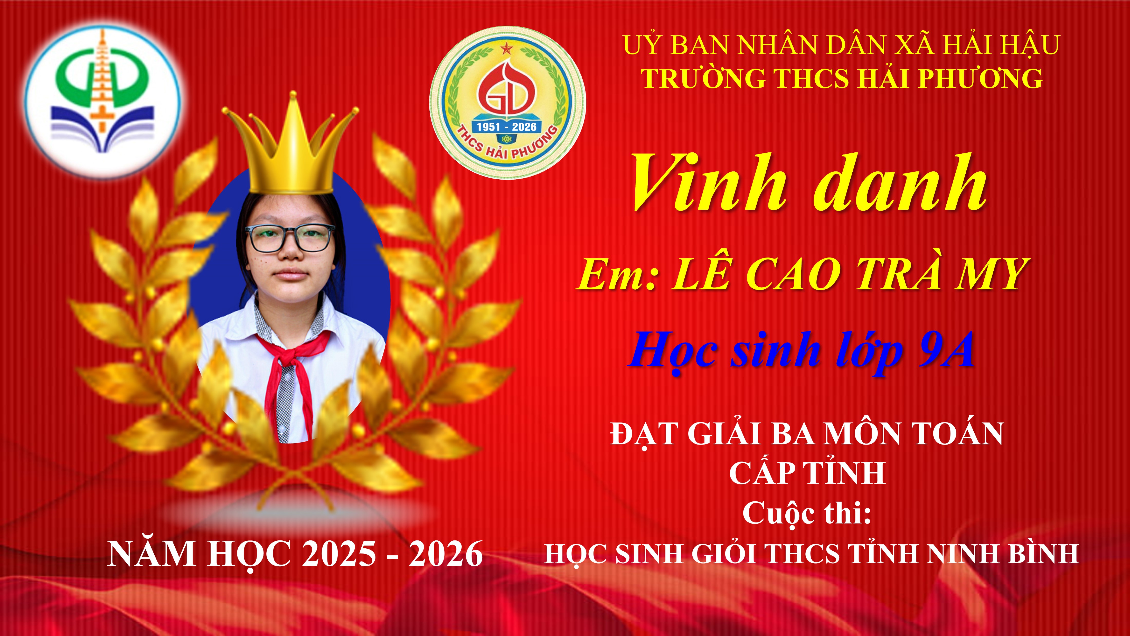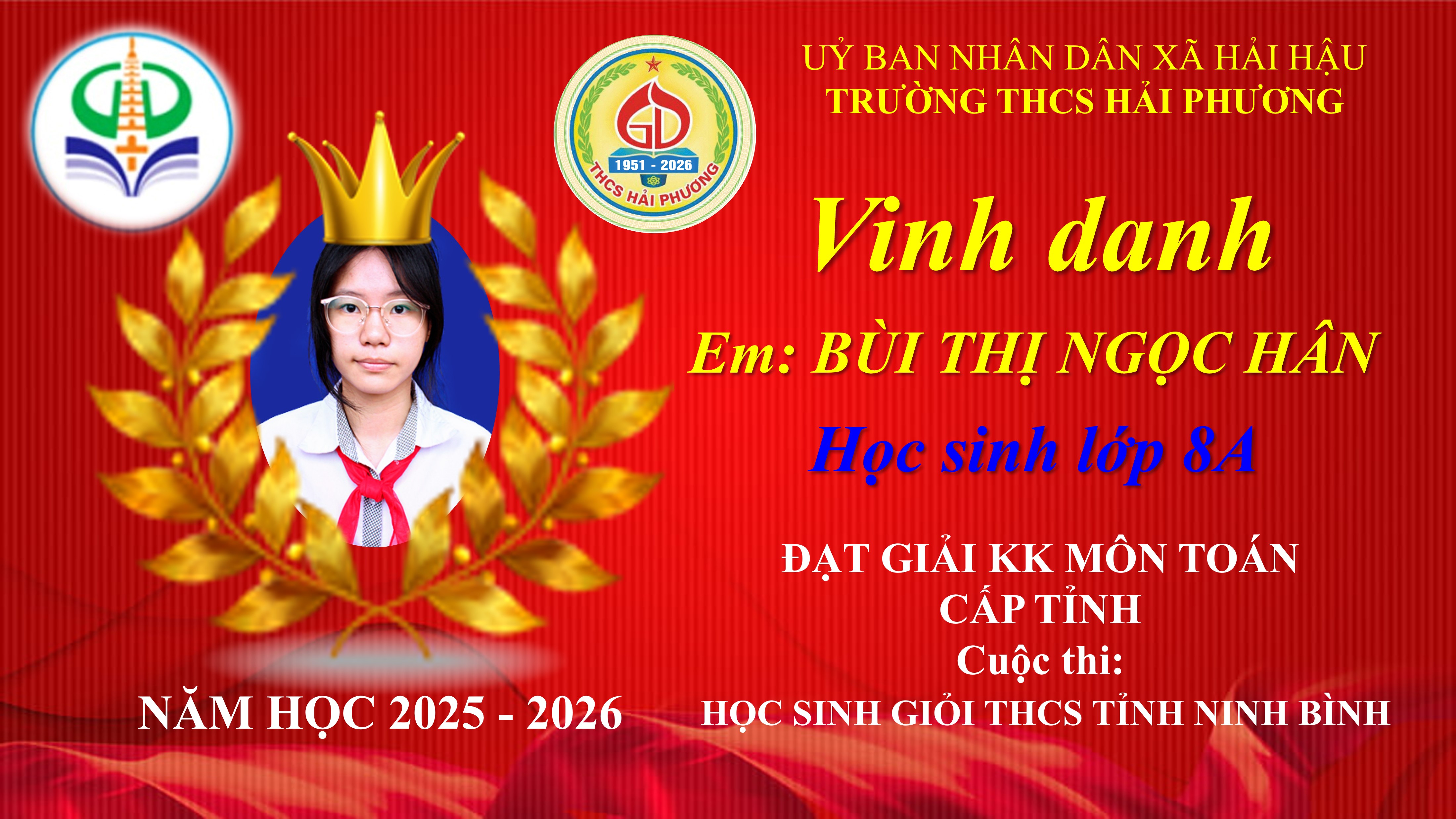TRƯỜNG THCS HẢI PHƯƠNG VINH DANH HỌC SINH XUẤT SẮC TẠI KỲ THI CHỌN HỌC SINH GIỎI THCS TỈNH NINH BÌNH NĂM HỌC 2025 – 2026